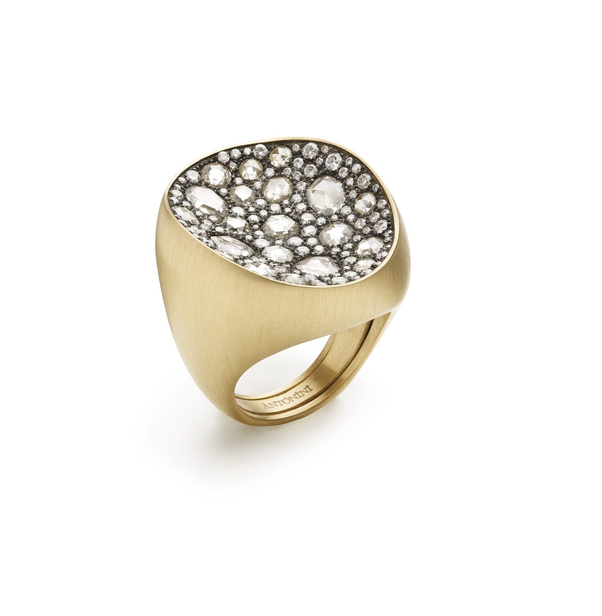 ring extraordinaire yellow matt gold, diamonds rose cut ct. 2,06 and diamonds ct.0.99,18kt