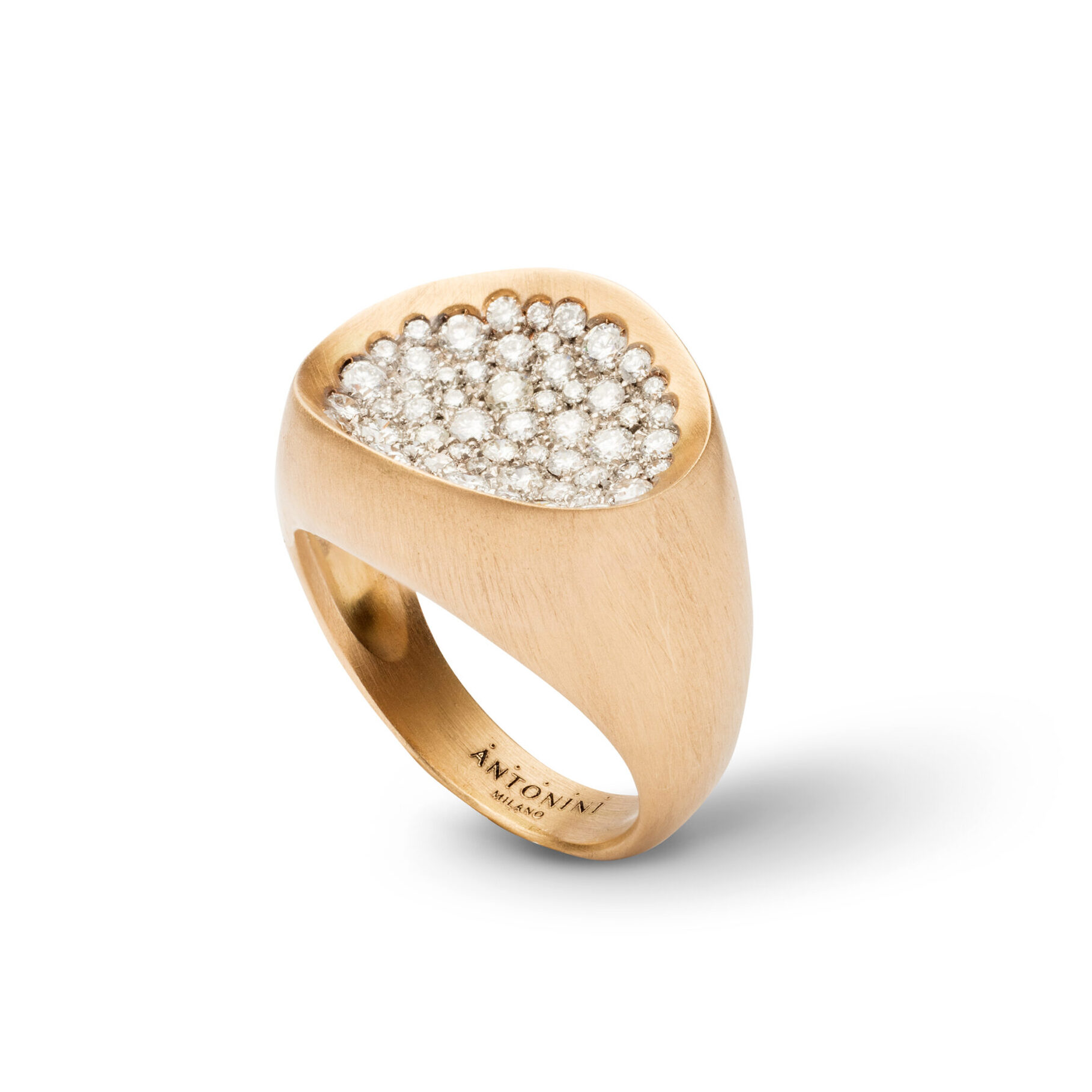 Matera large ring in yellow matt gold and diamonds pavé, 18kt