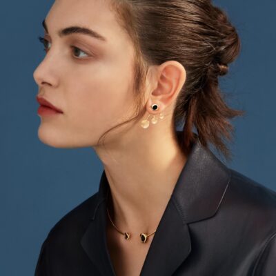 Atolli collection is simple shapes, made exclusively from polished yellow gold 18kt, white diamonds and jet. Circular elements of various sizes, reminiscent of the typical shape of an atoll: an outline that encompasses a stretch of crystal clear water.