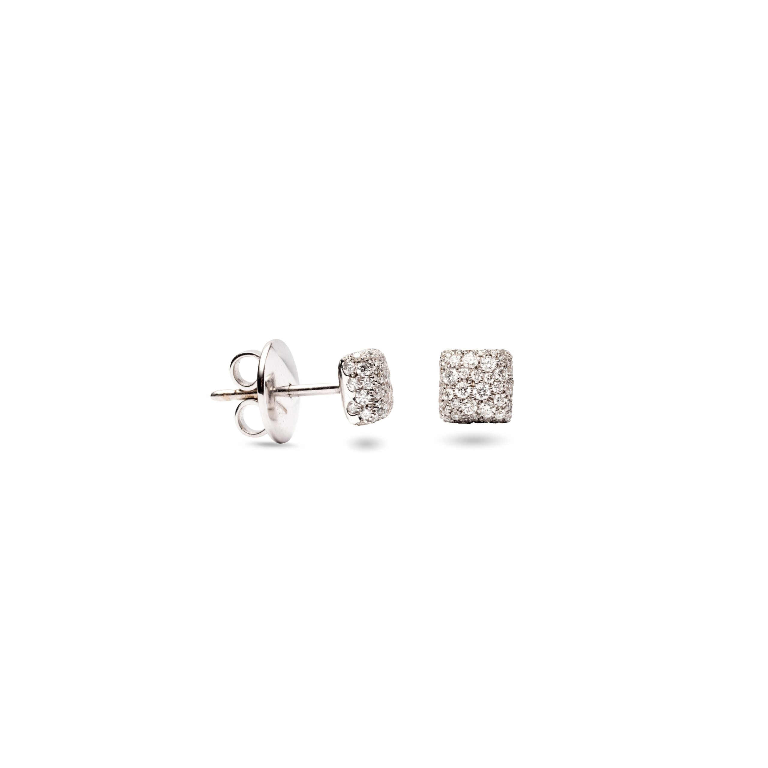 Amalfi pin earrings in white gold and white diamonds pavé, 18kt