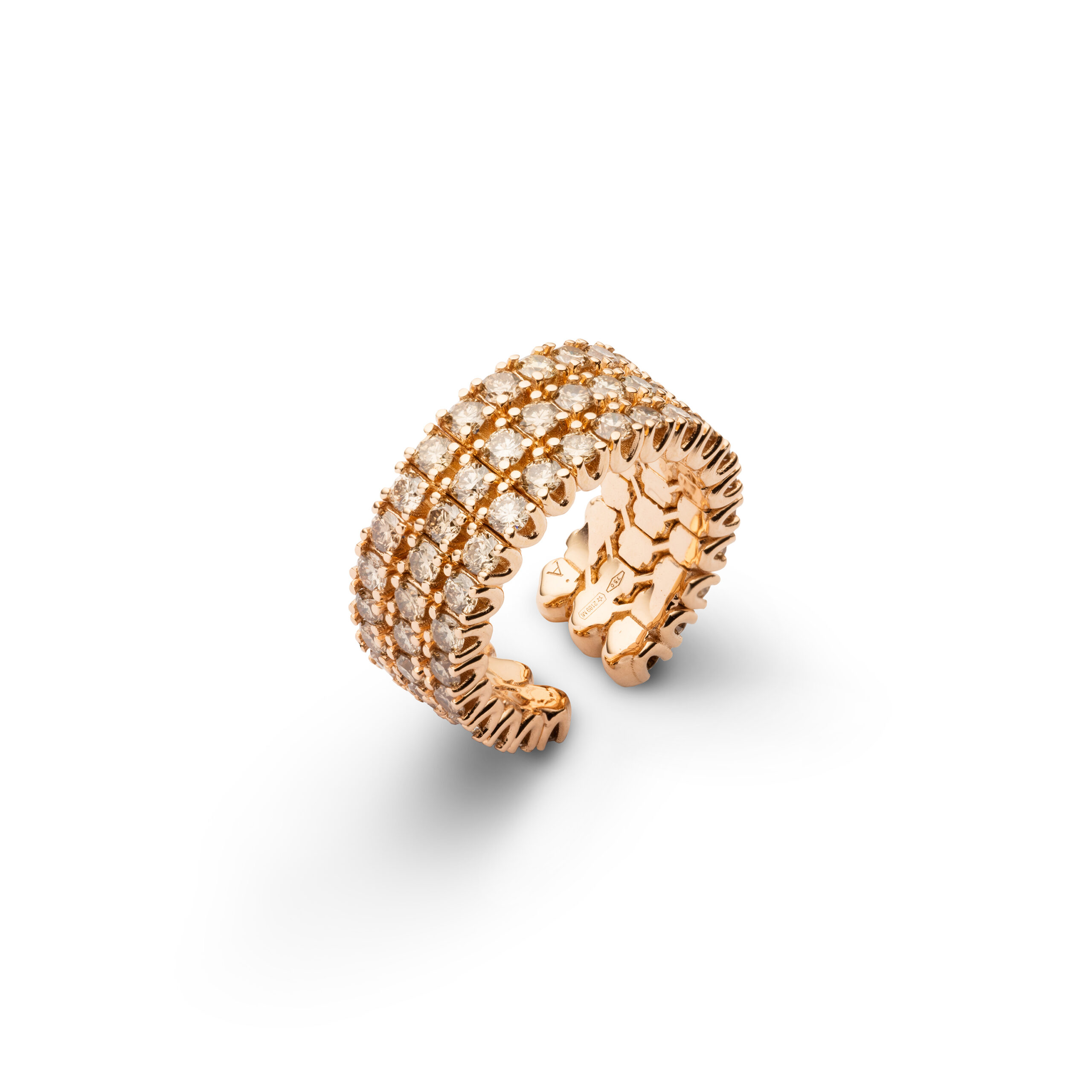 Cortina ring in rose gold and three champagne diamonds lines, 18kt