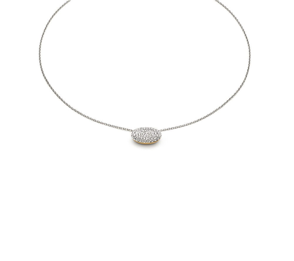 Etna small pendant in white gold and diamonds pavé on gold rope chain necklace, 18kt
