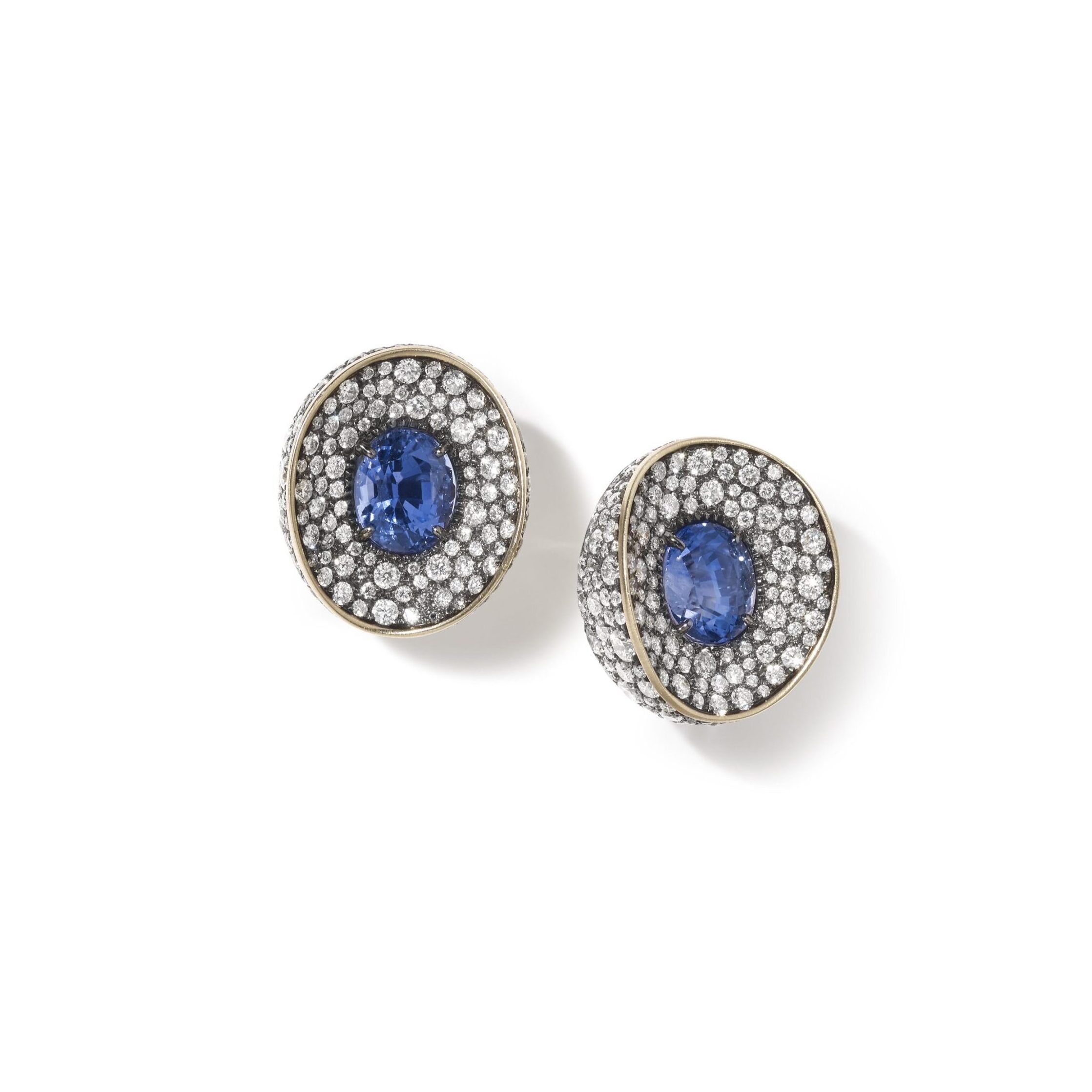 Extraordinaire earrings white gold black rhodium, ceylon sapphire ct.6,89 and diamonds ct.4,74,18kw