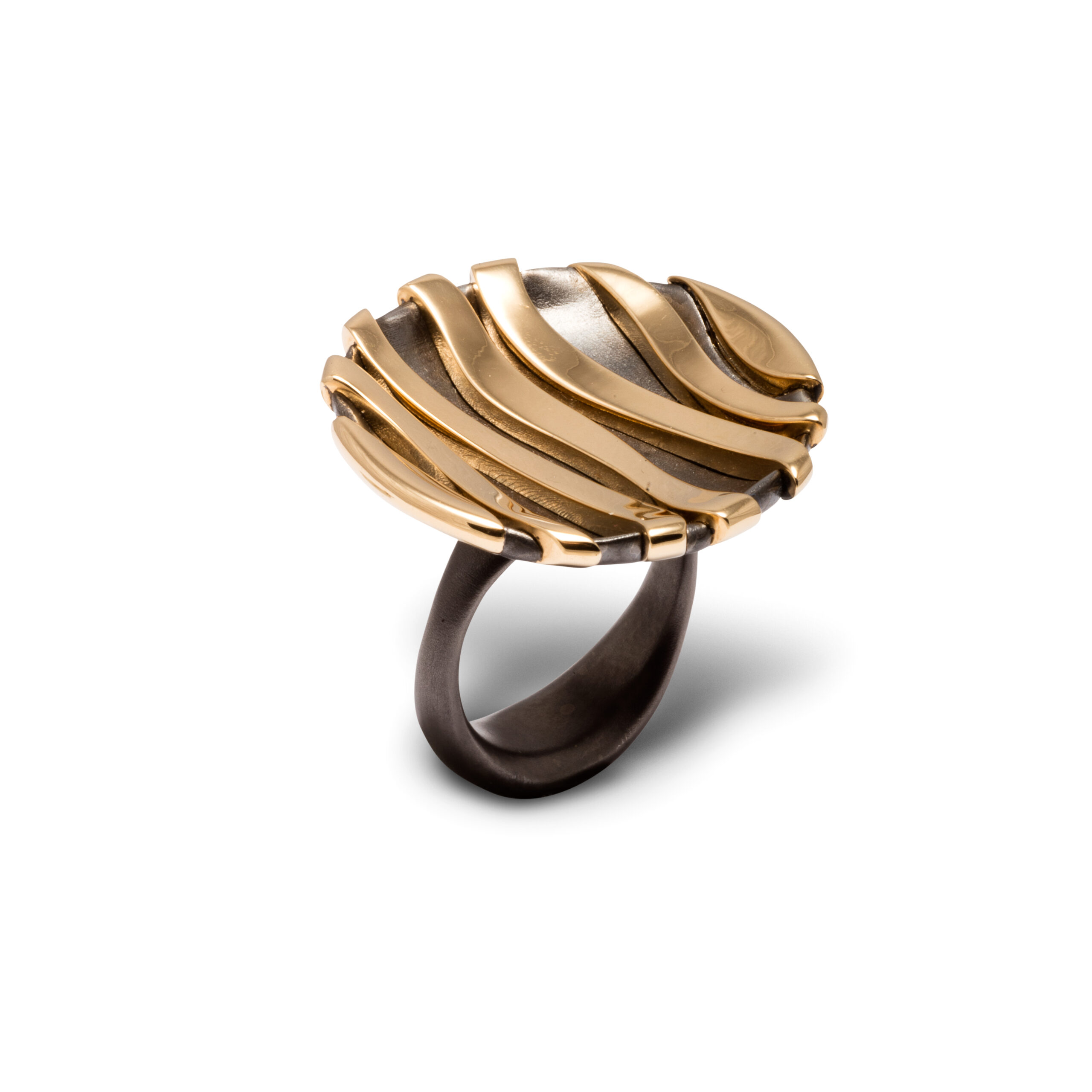 Extraordinaire ring in yellow gold and silver in black rhodium, 18kt