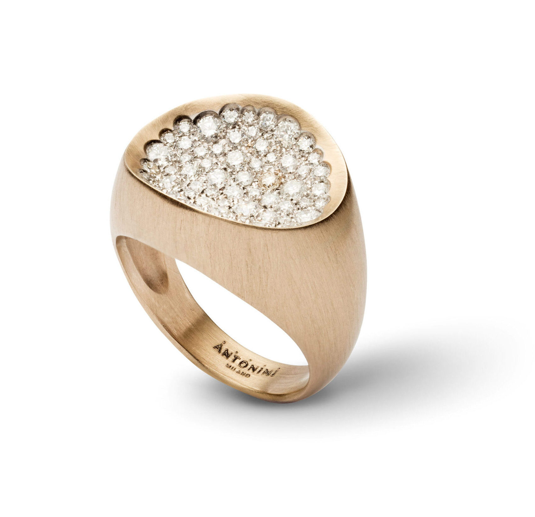 Matera large ring in white matt gold and diamonds pavé, 18kt