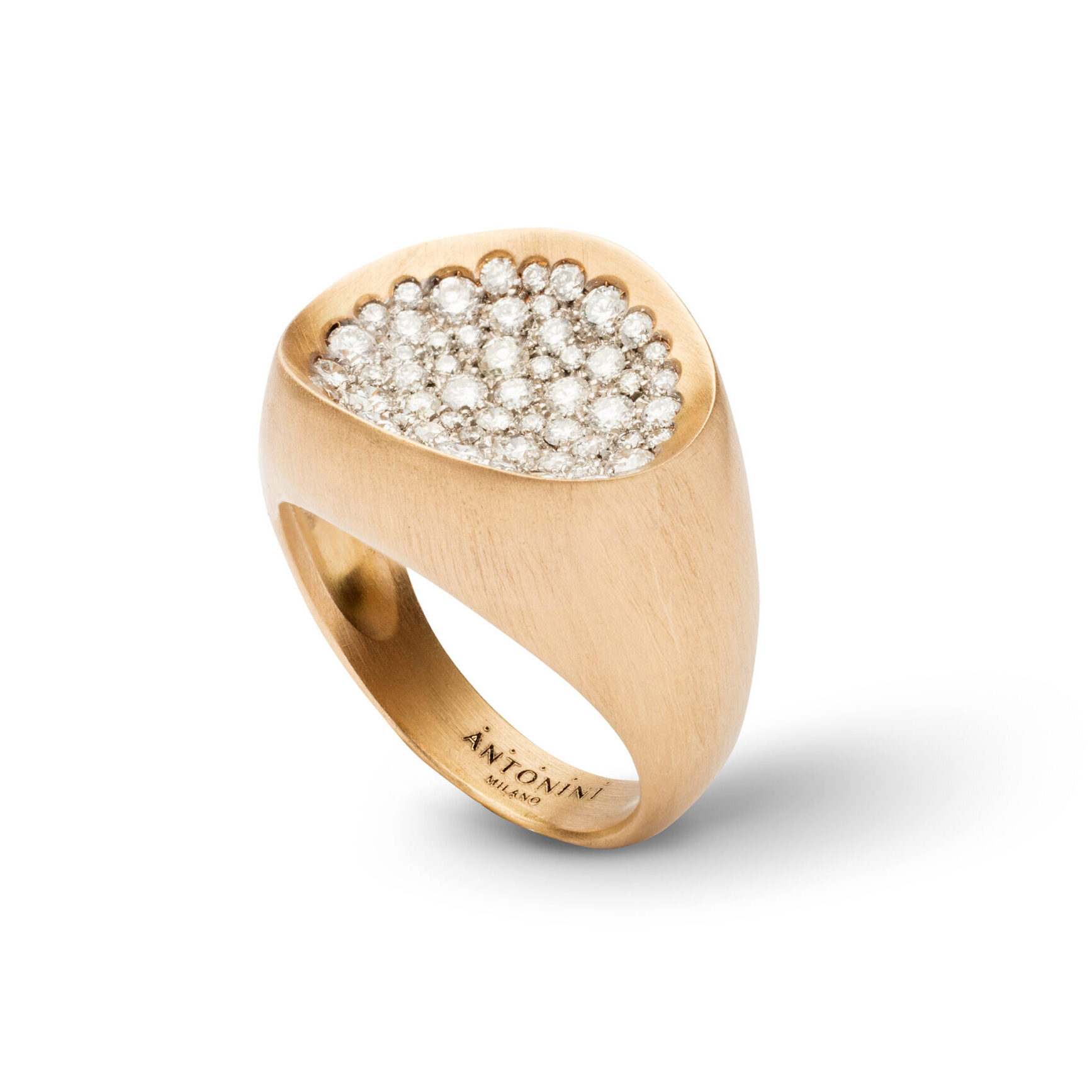 Matera large ring in yellow matt gold and diamonds pavé, 18kt