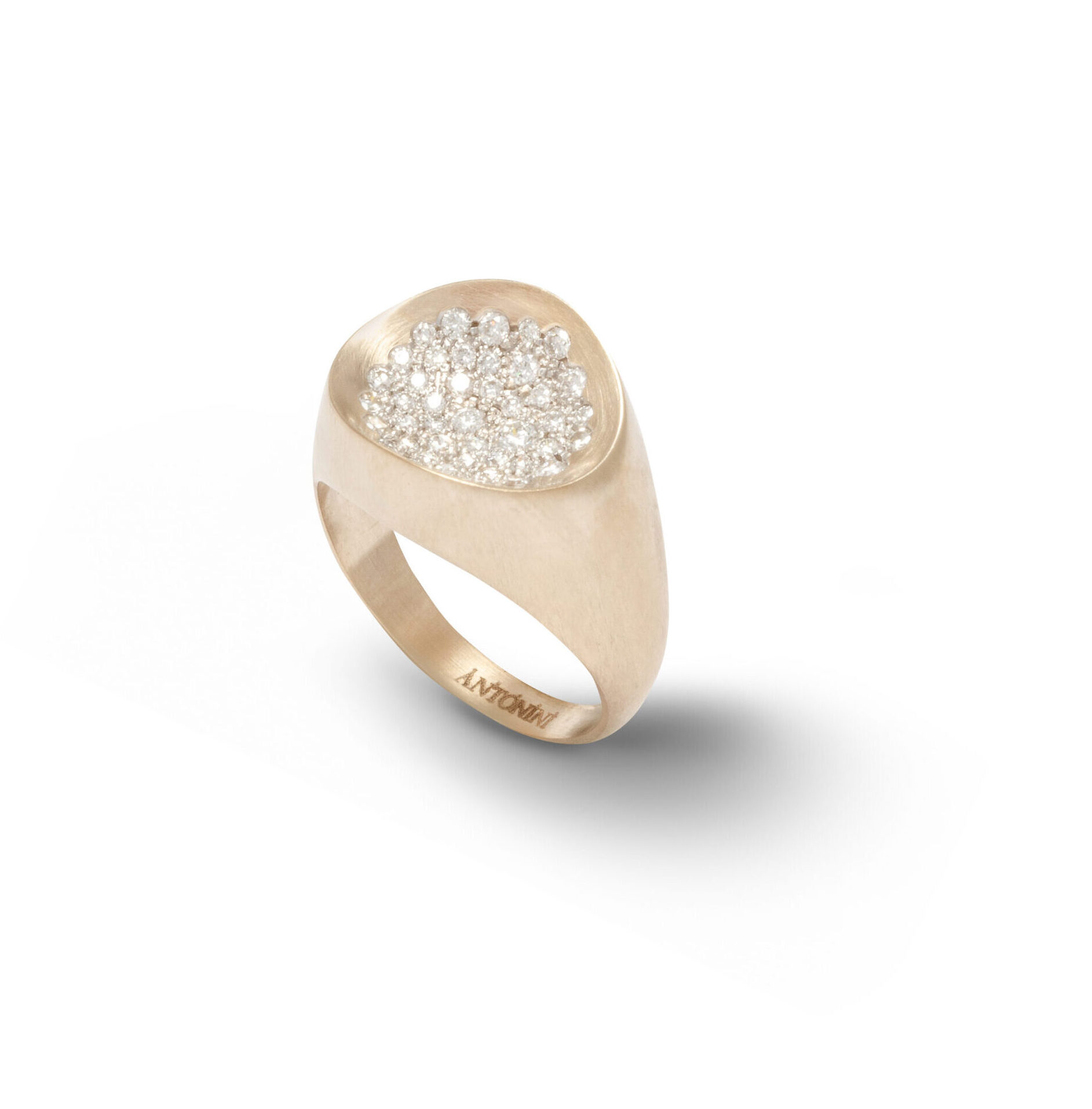 Matera small ring in white matt gold and diamonds pavé, 18kt