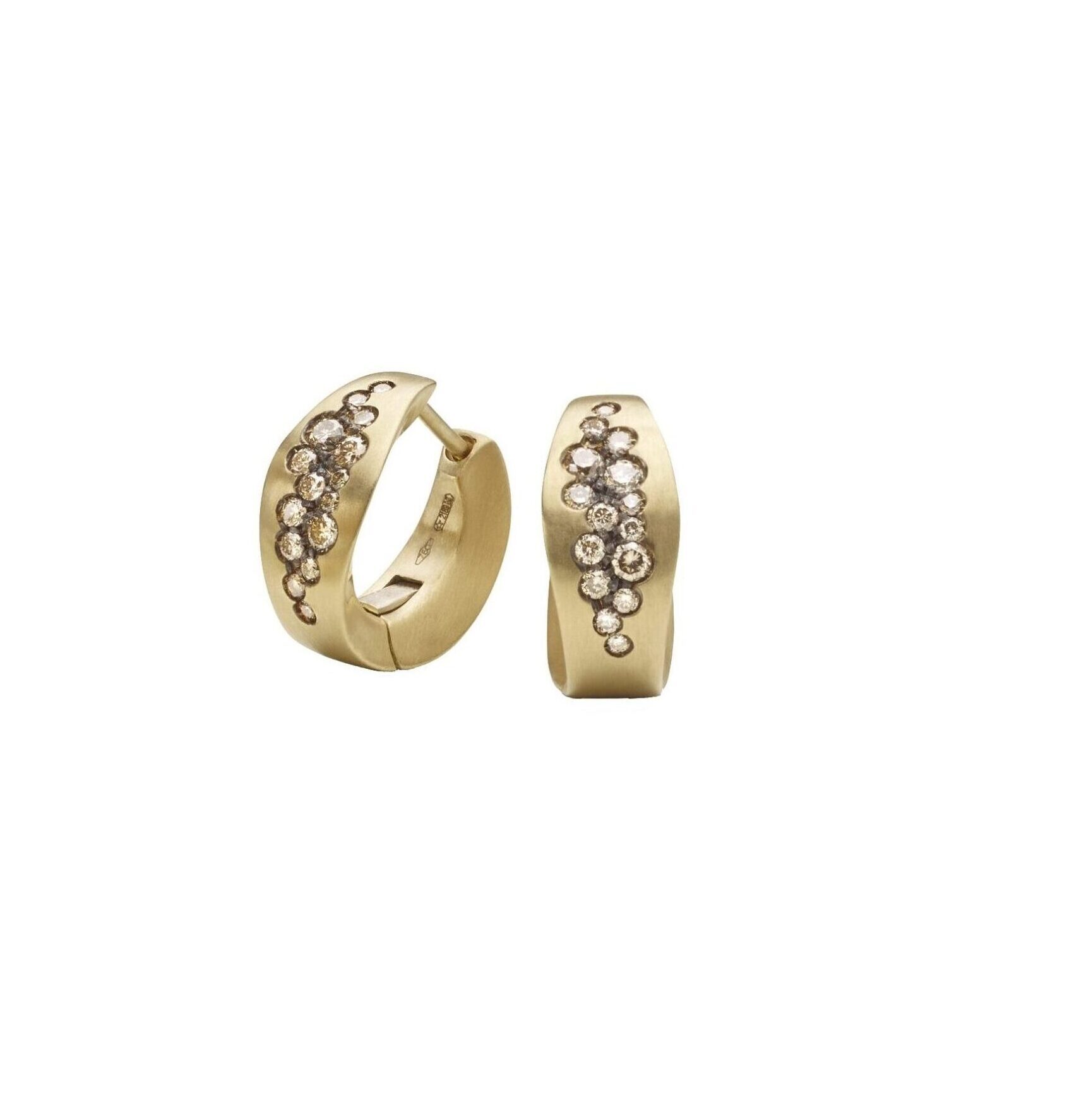 Matera earrings in yellow matt gold and cognac diamonds, 18kt