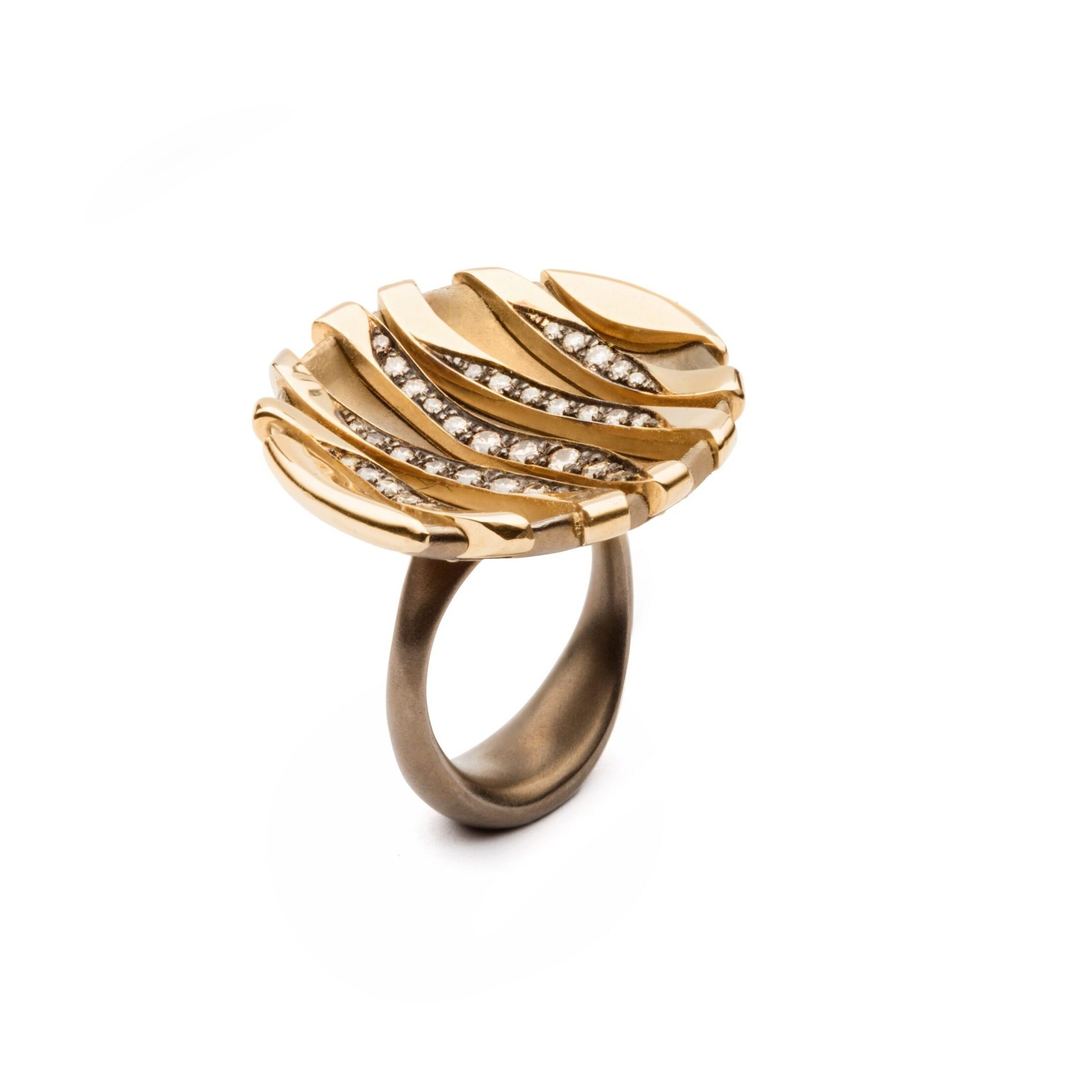 Limited edition ring in yellow gold/brown titanium and champagne diamonds, 18kt