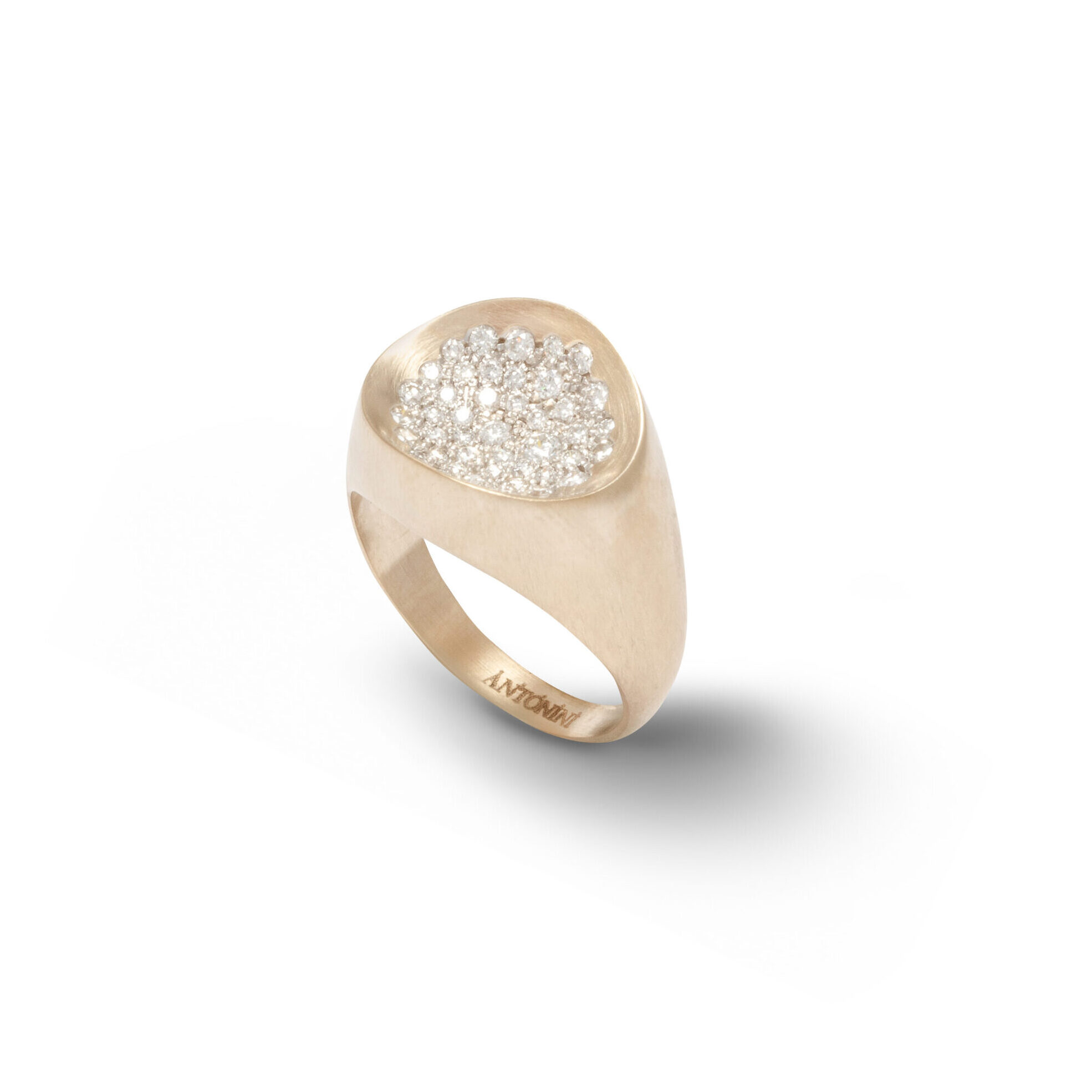 Anello Matera piccolo in oro bianco satinato e pavé di diamanti, 18kt