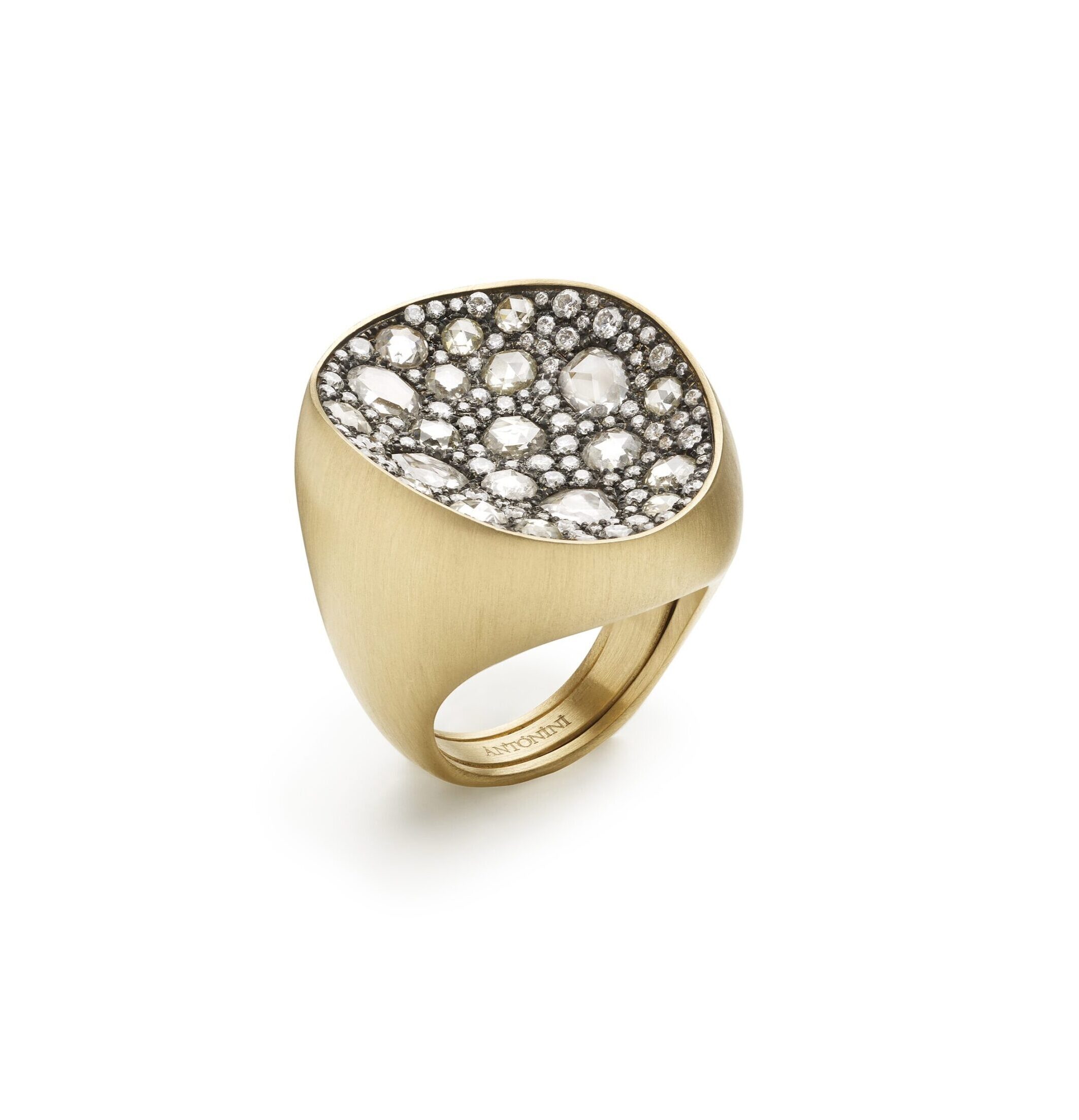 ring extraordinaire yellow matt gold, diamonds rose cut ct. 2,06 and diamonds ct.0.99,18kt