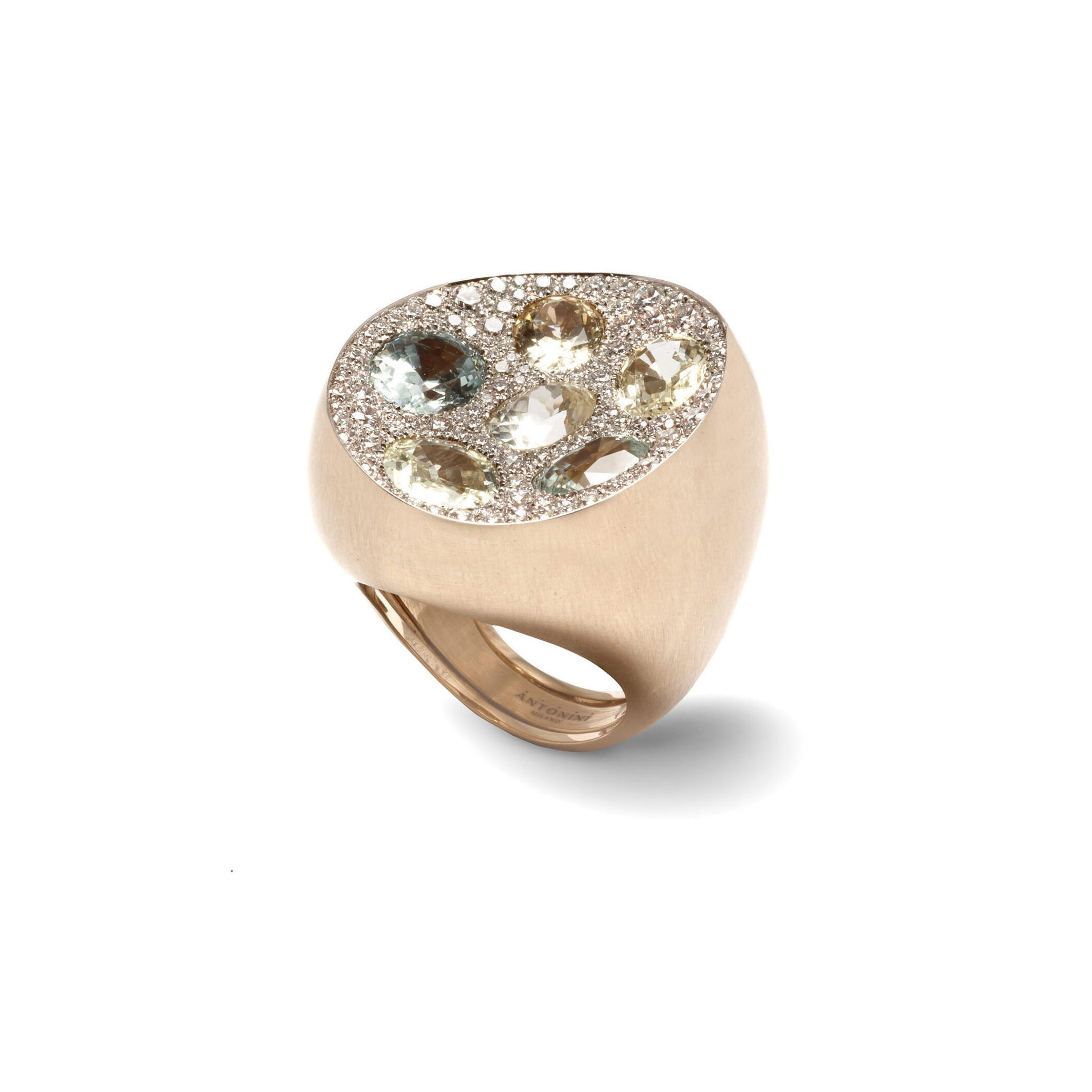 Request information or buyRING EXTRAORDINAIRE WHITE NATURAL COLOR, SAPPHIRES MULTICOLOR AND DIAMONDS, 18KT