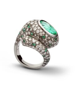 ring extraordinaire yellow gold, 2 emeralds ct. 2,81, 18ky