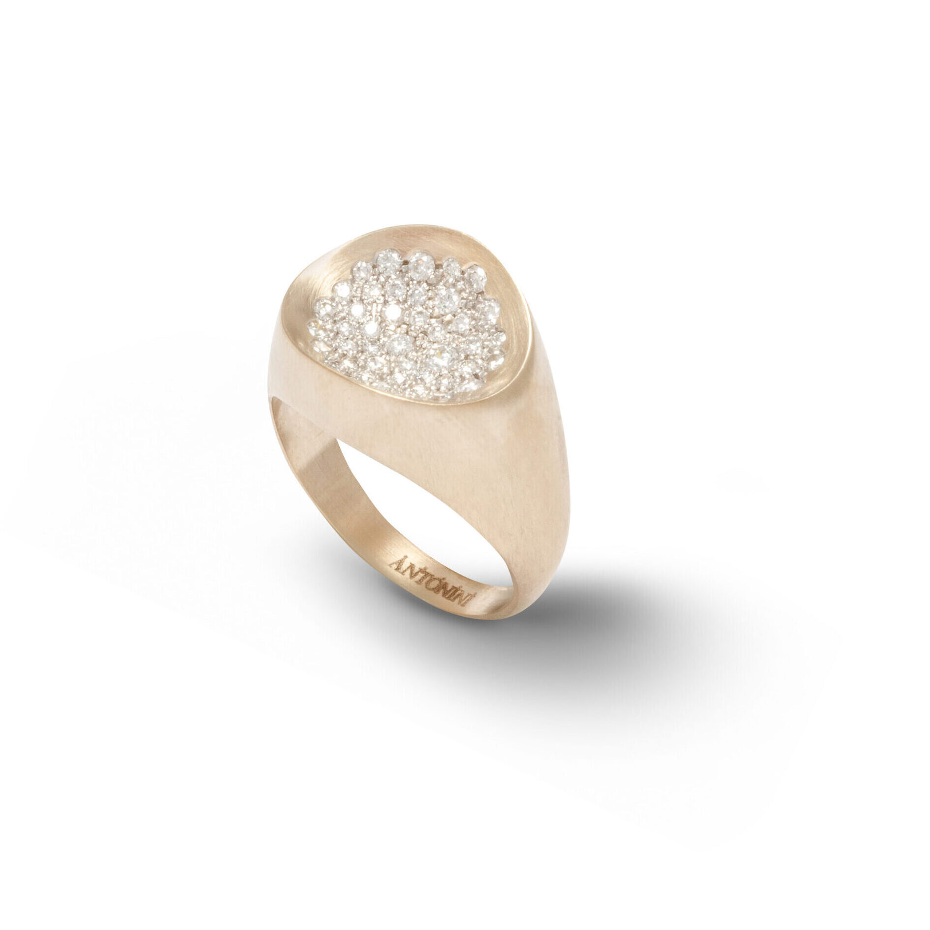 Matera small ring in white matt gold and diamonds pavé, 18kt