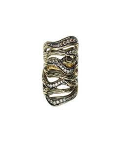 Matera large ring in yellow matt and polish gold and one line diamonds, 18kt